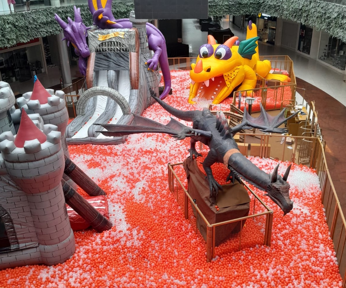 Brincadeira medieval – Castelo medieval, dragões e torre integram o cenário do Magic Dragon, atração que tem 276 metros. O brinquedo traz ainda dois escorregadores infláveis temáticos, dragão mecatrônico e mais de 200 mil bolinhas em uma piscina incrível. Para todas as idades, a aventura permite crianças com até 1,40 metros de altura e os menores de 4 anos devem brincar acompanhados por um adulto. O valor é de R$ 50 por 50 minutos de diversão e PCDs (Pessoas com Deficiência) têm desconto de 50% mediante apresentação de documento identificado ou laudo carimbado com o CRM do médico. O Magic Games funcionará de segunda-feira a sábado das 10h às 22h e aos domingos do meio-dia às 20h.