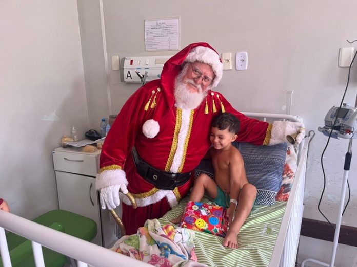 Ações realizadas entre os dias 22 e 24 de dezembro levaram brinquedos, doces, kits de higiene e a presença do Papai Noel aos pacientes internados, reforçando o cuidado humanizado no hospital