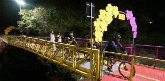 Ciclistas comemoram inauguração da Passarela dos Ipês
